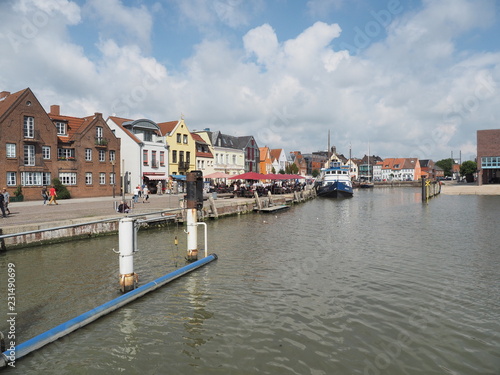 Fototapeta premium Hafenstadt Husum - „die graue Stadt am Meer“ im Bundesland Schleswig-Holstein nahe Dänemark