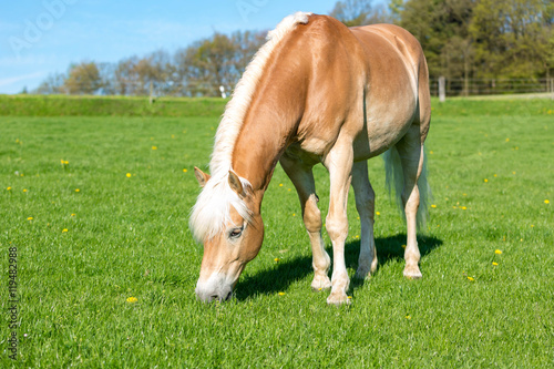 © StudioLaMagica, Fototapeta premium Haflinger beim Grasen auf der Koppel