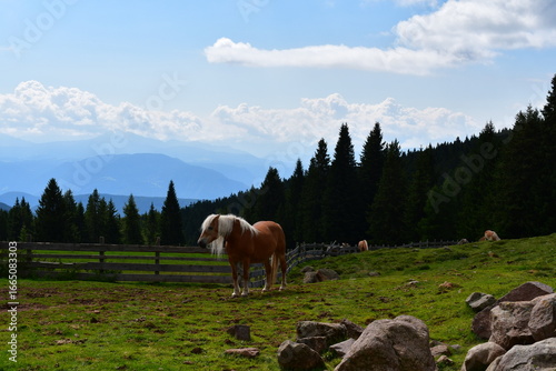 © Sigena, Fototapeta premium Haflinger Pferde auf der Weide am Jenesier Jöchl in Südtirol