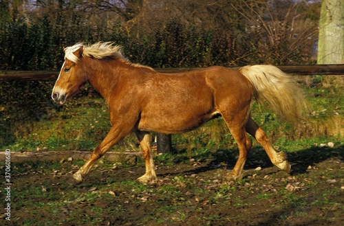 Obraz premium Haflinger Pony, Adult Galloping in Paddock