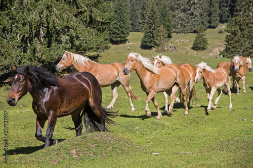 © Hans und Christa Ede, Fototapeta premium Haflingerpferde auf einer Almwiese
