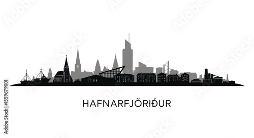 Naklejka premium Hafnarfjordur Iceland Skyline Silhouette Vector.
