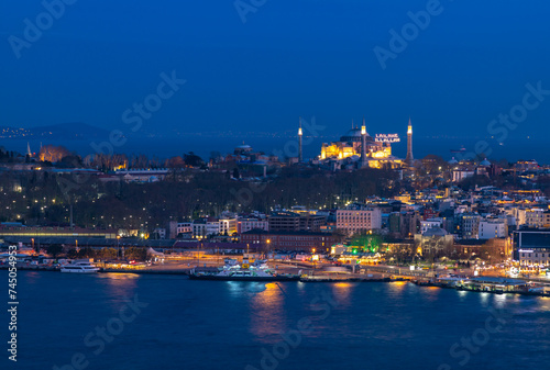 Obraz premium Hagia Sophia and Golden Horn Waterfront at Night