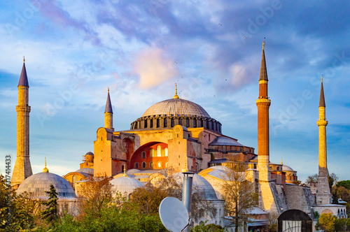 Obraz premium Hagia Sophia exterior, taken at a cloudy sunset.