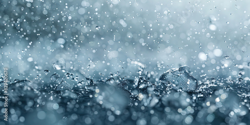 Fototapeta premium Hailstorm Impact: A close-up image of hailstones falling on the ground, bouncing off surfaces and creating a stark contrast against the background