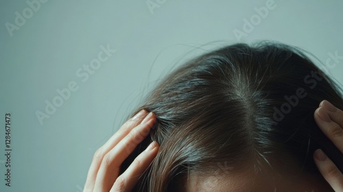 Fototapeta premium Hair loss displayed in a person brushing their thinning hair in a minimalist...