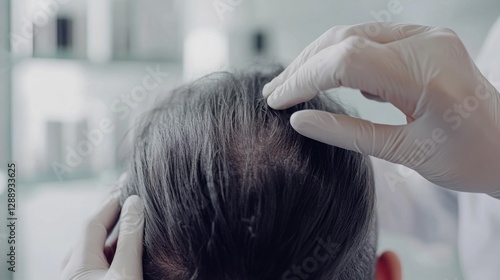 Fototapeta premium Hair restoration therapy in a sleek, minimalist clinic. Featuring advanced regrowth treatments and personalized care