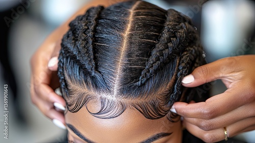 Naklejka premium Hairdresser making french braids to customer in a hair salon