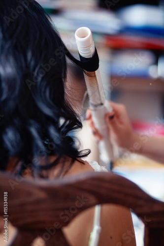 © ribalka yuli, Fototapeta premium hairdresser uses curling hair