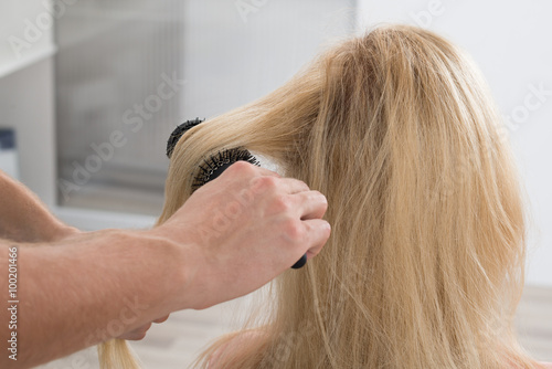 Fototapeta premium Hairstylist Brushing Woman's Hair