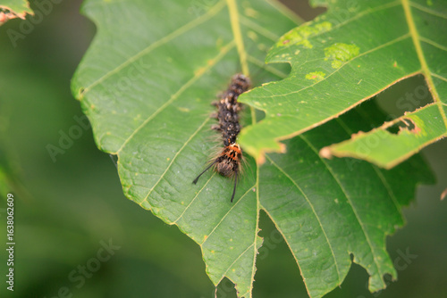 Fototapeta premium Hairy Caterpillar on a Green Leaf