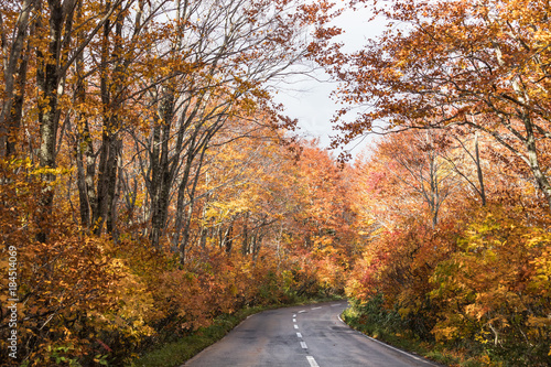 © torsakarin, Obraz premium Hakkoda gold line at Aomori prefecture in autumn