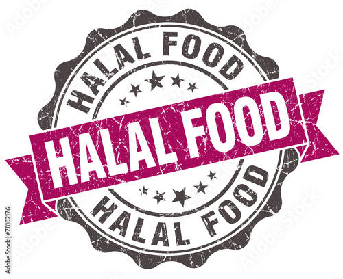 © Aquir, Obraz premium halal food grunge violet seal isolated on white