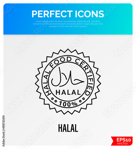 © SilenceVideo, Fototapeta premium Halal food sign, round emblem. Certified and guaranteed. Islam religion. Vector illustration.