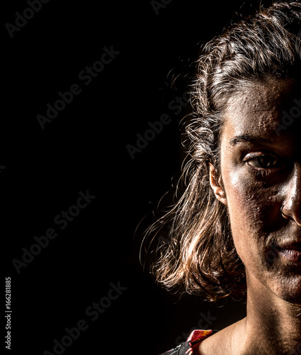 © Alessandro Grandini, Fototapeta premium Half face in the dark of night of woman warrior