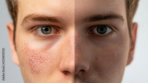 © Vladimir, Fototapeta premium Half face showing acne and clear skin.