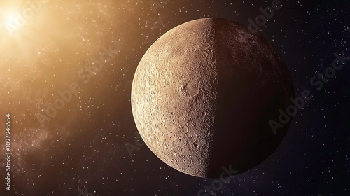 Naklejka premium Half-lit celestial body in space.