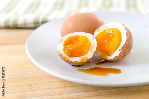 © tieataopoon, Fototapeta premium half medium-boiled eggs in Japanese Bowl