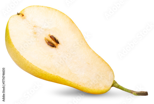 © Iurii Kachkovskyi, Fototapeta premium half of sweet yellow pear isolated on white background. Clipping path