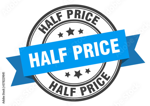 © Aquir, Obraz premium half price label sign. round stamp. band. ribbon