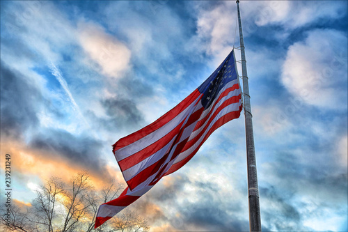 © Edwin, Obraz premium Half Staff U.S. Flag