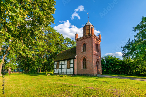 Naklejka premium Half-timbered church of St. Hubert from 1793. Nowe Warpno, West Pomeranian...