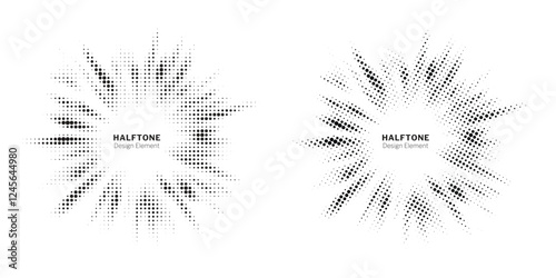 Fototapeta premium Halftone circle frame background set. Round border Icon using halftone random...