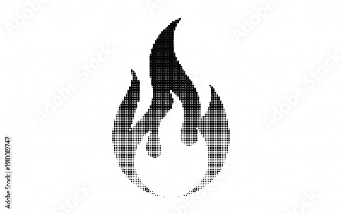 © Parul, Obraz premium Halftone Dot Fire on White Background, Abstract Flame Symbol