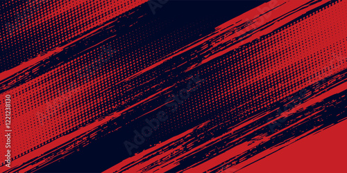 Fototapeta premium Halftone dots red and blue color pattern gradient grunge texture background. Dot pop art comic sport style vector illustration. grunge