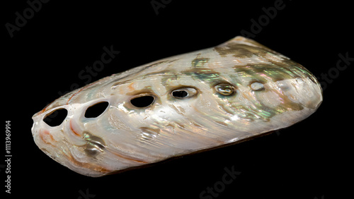 © multipedia, Naklejka premium Haliotis asinina shell on black background