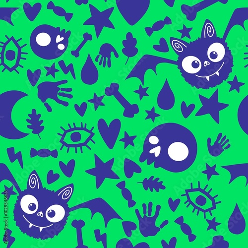 Fototapeta premium Halloween animals seamless bats vampire pattern for wrapping paper and fabrics