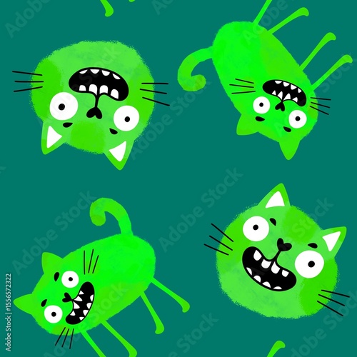 © Tetiana, Obraz premium Halloween animals seamless cats pattern for wrapping paper