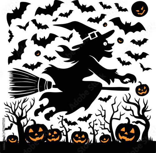 Fototapeta premium halloween background vector style silhouette with pumpkin and bats