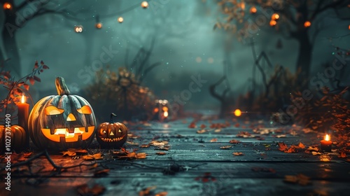 Naklejka premium Halloween background wallpaper concept with empty space and Jack O Lantern...