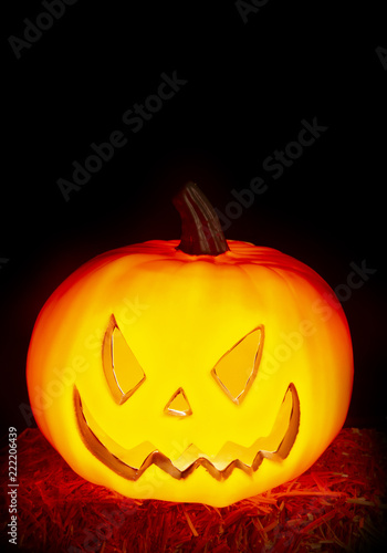 © pamela_d_mcadams, Obraz premium Halloween Background with a Lit Jack-o-Lantern