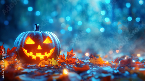 © Sergio, Fototapeta premium Halloween background with pumpkins and leaves
