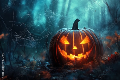 © STF Design , Naklejka premium Halloween background with web and spider,pumpkin