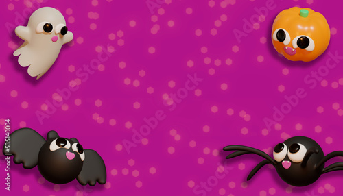 © Alex Bernal, Fototapeta premium Halloween banner whit spider and bat. 3D Illustration. Above view over an pink banner background with copy space.