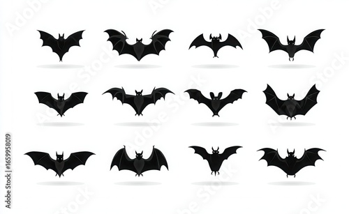 Naklejka premium halloween bat, kawaii bats, set of bats
