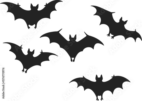 © sefatahmed, Fototapeta premium halloween bat vector silhouetted black bats flying in a group against a white background