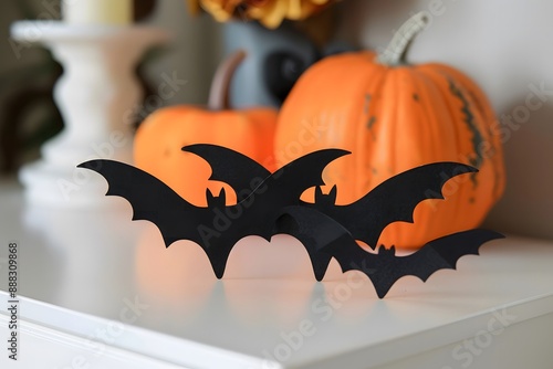 © LUBKA, Fototapeta premium Halloween bats and pumpkins.