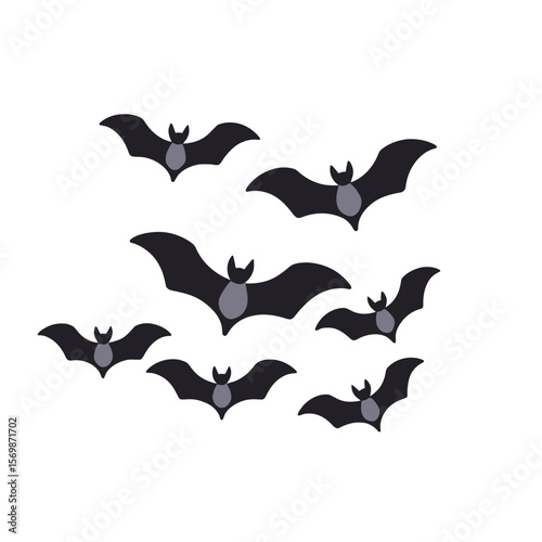 © aras, Naklejka premium Halloween Bats Illustration-Spooky Flying Bats Clip Art-Cute Halloween Graphic-Black Bats on White Background-Perfect for Halloween Decor & Crafts