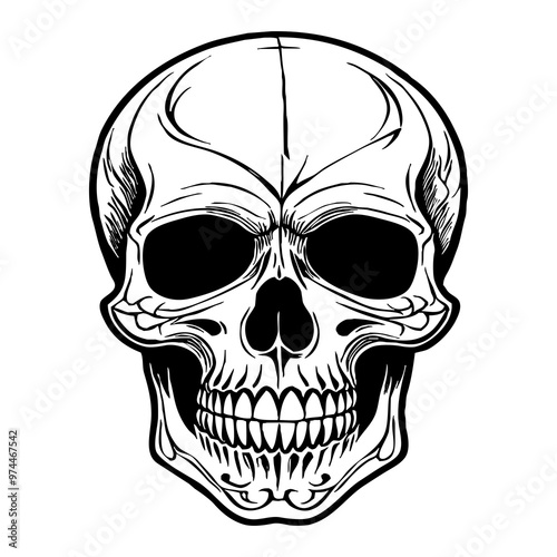 Fototapeta premium Halloween. Black and white drawing. Logo design for use in graphics. Skull