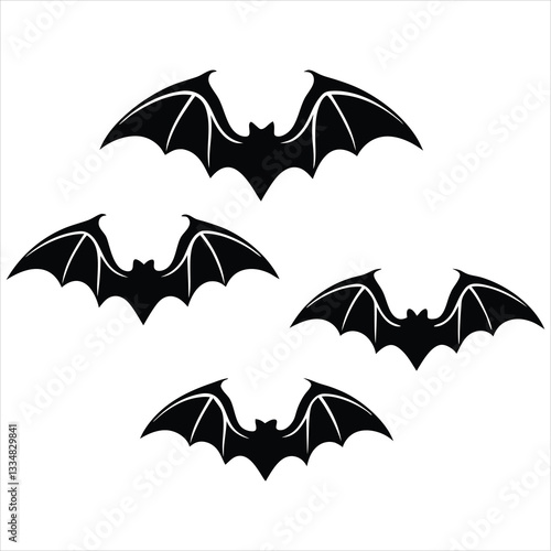 Fototapeta premium Halloween Black Bat Silhouettes Vector Set – Spooky Flying Bats