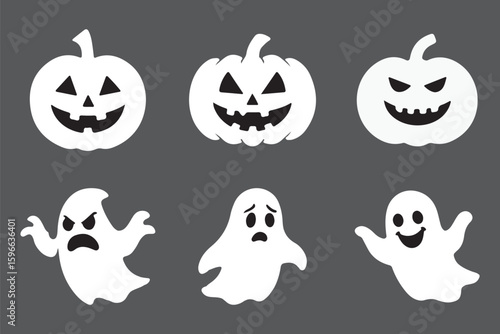 © Agastya 897, Fototapeta premium Halloween black silhouettes witch bat ghost pumpkin cat spider cauldron