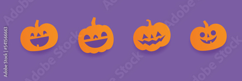 Fototapeta premium Halloween carved pumpkins. Jack O lantern flat icons.