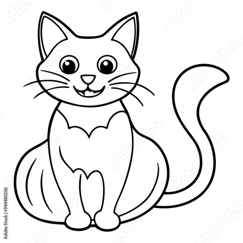 © Trendy CraftSVG , Naklejka premium Halloween cat line art vector illustration, Halloween outline vector