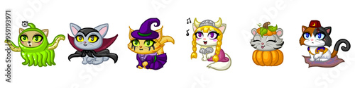 Obraz premium Halloween Cat set vector illustration