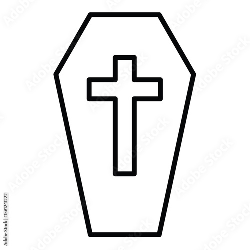 Obraz premium Halloween coffin icon Black and white outline flat sign vector