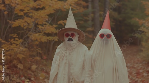 © Design Planer, Obraz premium halloween costumes standing amidst plants in garden